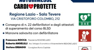 Parte a Roma il meritorio progetto “Autorimesse cardioprotette”. Martedì 30 settembre, alle ore 11.15, presso la sala Tevere della Regione Lazio in via Cristoforo Colombo 212 ci sarà la consegna di 22 defibrillatori e attestati corso BLSD, grazie a CO.PA.M. e onlus Planet Solidarietà – APS. Con il presidente della …