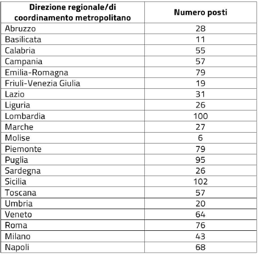 I posti da ricoprire sono individuati presso le seguenti sedi Inps: