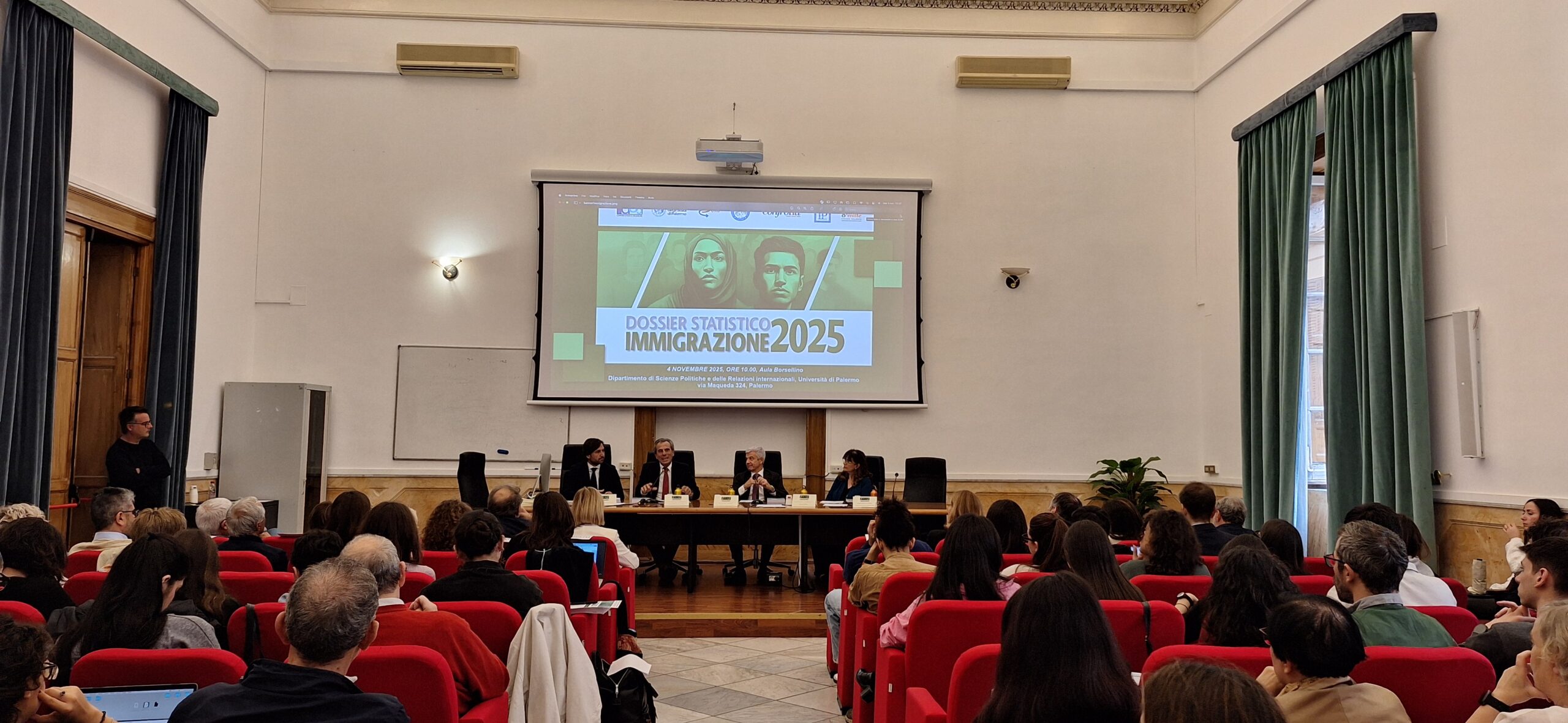 Dall’altra parte del mare, oltre lo Stretto, è avvenuta in contemporanea la presentazione del Dossier statistico immigrazione 2025 con un focus regionale dedicato alla Sicilia. L’evento è stato ospitato dal Dipartimento di Scienze politiche e delle Relazioni internazionali dell’Università di Palermo. I saluti istituzionali sono stati affidati al direttore Dems dell’Università di Palermo, Costantino Visconti, al rettore Massimo Midiri, alla professoressa Giuseppina Tumminelli, moderatrice dei lavori. Sono intervenuti il viceprefetto di Palermo, Patrizia Adorno, l’assessore comunale Fabrizio Ferrandelli, la dirigente generale del dipartimento della Famiglia e delle Politiche sociali, Maria Letizia Di Liberti. I dati relativi al territorio siciliano sono stati esposti dal ricercatore dell’Università di Messina, Tindaro Bellinvia e da Abdelkarim Hannachi, dell’Osservatorio regionale sul fenomeno migratorio. Il focus regionale ha messo in luce le specificità dell’area siciliana che “continua ad essere il più importante approdo della rotta mediterranea centrale” ma anche “ormai da decenni notoriamente terra di insediamento, con tunisini, marocchini, romeni, albanesi, srilankesi, bangladesi, cinesi divenuti componenti fondamentali del tessuto sociale e culturale dell’Isola e, più recentemente, con molti subsahariani che acquisiscono permessi di lungo soggiorno e cominciano a ricongiungersi anch’essi con le proprie famiglie”.