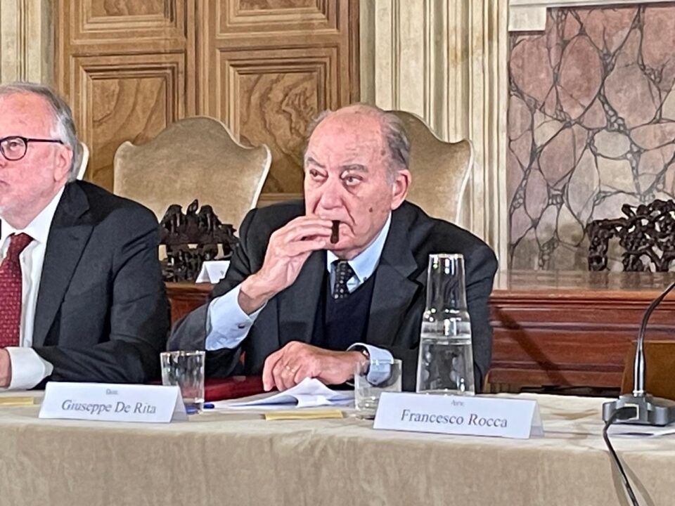 Novantadue anni e non sentirli. Una grande capacità di analisi e d’interpretazione della complessità sociale. Cattolico e al tempo stesso fuori dagli schemi, sociologo con una laurea in giurisprudenza, ideatore, fondatore e numero uno del Censis, per undici anni ha ricoperto la carica presidenziale al Cnel, Giuseppe De Rita si racconta nel libro “Oligarca per caso”, scritto insieme al giornalista Lorenzo Salvia per Solferino editore. Per la prima volta ripercorre le tappe principali della sua vita che s’intrecciano ad importanti momenti dell’evoluzione politica, sociale ed economica del Paese. “Oligarca per caso” non è solo una biografia inedita e appassionante, ma è anche una rilettura della storia italiana attraverso lo sguardo di un suo testimone d’eccezione.