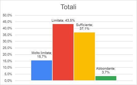 In generale, oltre 6 imprese su 10 hanno dichiarato di avere una situazione di liquidità “limitata” (43,5%) o “molto limitata” (15,7%) – con punte dell’83% tra le microimprese e del 31% tra le imprese medie. Tuttavia, il 37% delle imprese del campione ritiene ancora oggi di avere una situazione di liquidità sufficiente e il 3,7% di avere “abbondante” liquidità.