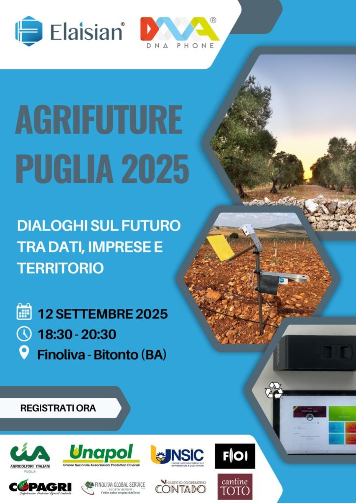 Il 12 settembre a Bitonto (Bari) si è svolta “AgriFuture Puglia 2025”, evento promosso da Elaisian e DNAphone, due realtà italiane all’avanguardia nell’agritech.