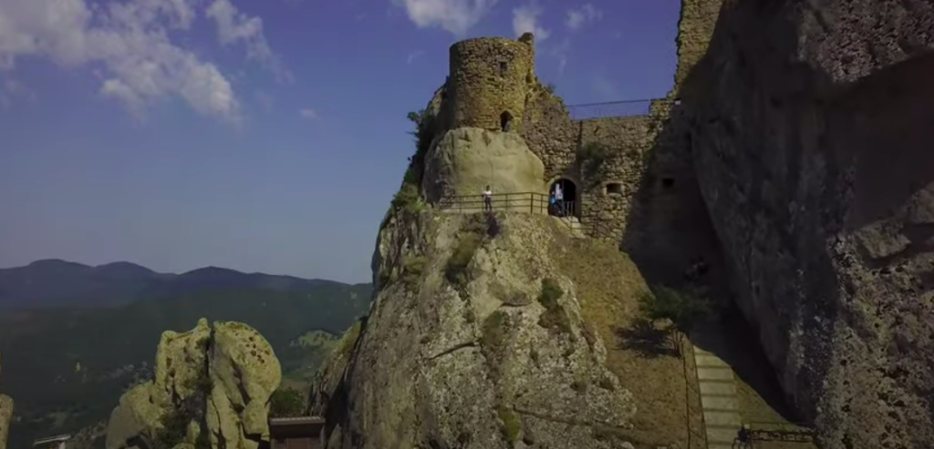 Nella parte più alta di Pietrapertosa, arroccato sulle rive delle Dolomiti lucane, si erge il Castello, struttura fortificata, testimonianza di molteplici insediamenti storici susseguitesi nel tempo che ne hanno cambiato la destinazione d’uso da fortilizio a residenza baronale. Il castello Normanno-Svevo ha una struttura originaria di epoca romana e grazie alla sua posizione di dominio visivo sulla Valle del Basento, divenne importante all’epoca dei normanni nel IX secolo assolvendo un’essenziale funzione militare di avvistamento.